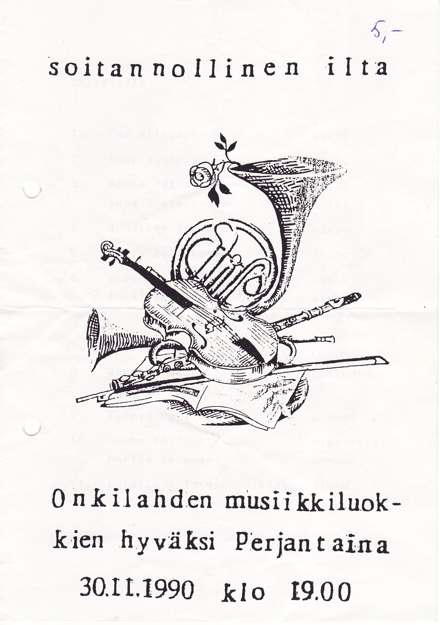 Tässä ovat nyt vain ensimmäinen ja viimeinen konserttiohjelma, mitä omista kokoelmistani löytyy. Skannaamatta on vielä puolisen sataa eri ajoilta laatikkoon kertynyttä dokumenttia.